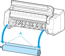 7. Afferrare dalle flange (A) il supporto per rotolo e rimuoverlo dallo slot supporto rotolo.