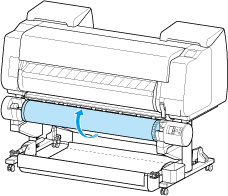 • Toccando l'area di visualizzazione delle impostazioni della carta e l'area nella fase di impostazione di Modalità di avvolgimento e impostando preventivamente Avvolgi dopo il taglio su Attiva, è possibile saltare i passi 6 e 7 seguenti perché, quando la carta verrà tagliata dopo la stampa, la carta successiva sarà avvolta automaticamente. Tuttavia, occorre prestare attenzione se si utilizza carta in rotolo facilmente danneggiabile, perché la carta in rotolo tocca il rullo quando viene tagliata.