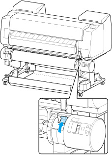 Переведите переключатель Фиксатор держателя рулона на блоке рулона в положение разблокировки.