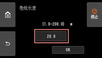 点击触摸屏上显示的键盘,输入卷纸长度,然后点击OK。