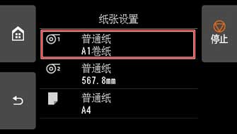 提前设置收纸模式并将裁切后卷起设置为启用时,通过依次点击纸张设置显示区域和