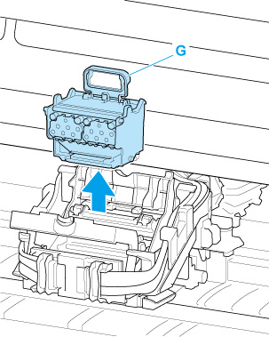 抓住抓斗(G)的蓝色手柄,移除打印头,然后点击OK