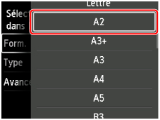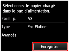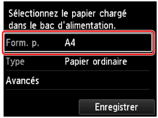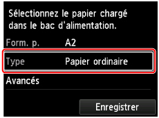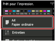 Sélectionnez la zone d'affichage des paramètres du papier dans l'écran ACCUEIL en appuyant sur le bouton