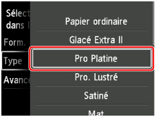 Sélectionnez Pro Platine en appuyant sur le bouton