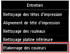 Avant d'effectuer l'étalonnage des couleurs, nettoyez ou alignez la tête d'impression. Cela améliore la précision de l'étalonnage des couleurs.