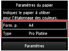 L'écran des paramètres du papier s'affiche.