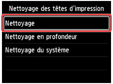 Sélectionnez Nettoyage des têtes d'impression et appuyez sur le bouton OK.