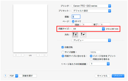 用紙サイズを選ぶ