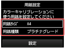 使用する用紙に合わせて[用紙サイズ]と[用紙種類]を設定し、[設定]を選んでOKボタンを押します。