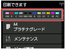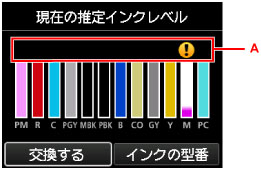 インクの残量についてお知らせがあるときは、図のAの部分にマークが表示されます。
