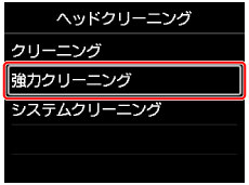プリントヘッドのクリーニングを行っても効果がない場合は、強力クリーニングを行ってください。強力クリーニングは、通常のクリーニングよりインクを消耗しますので、必要な場合のみ行ってください。