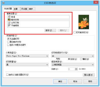 在快速设置选项卡上的常用设置中,选择合乎用途的打印配置文件。