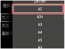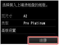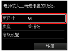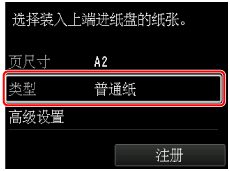 显示上端进纸盘中纸张的信息。 选择该项目后,可以指定上端进纸盘中装入纸张的尺寸和类型。
