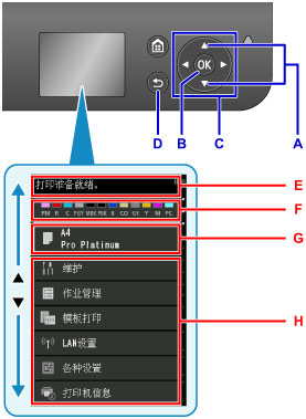 可以从LCD屏幕的主页屏幕上选择功能,如维护作业和打印机设置。