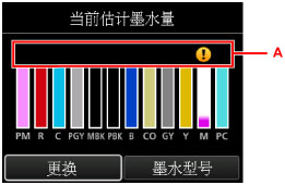 如果存在任何关于剩余墨水量的信息,区域A中会显示一个符号。