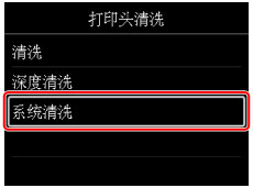 如果深度清洗打印头未能改善打印质量,请执行系统清洗。 系统清洗会消耗大量墨水。 频繁清洗系统会迅速消耗墨水,因此请仅在需要时执行系统清洗。