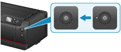 - عند فصل سلك الطاقة، اضغط على الزر تشغيل (ON)، ثم تأكد من أن مصباح الطاقة (POWER) مطفأ. قد يؤدي فصل سلك الطاقة عندما يكون مصباح الطاقة (POWER) مضيئًا أو وامضًا إلى جفاف رأس الطباعة أو انسداده وقد تنخفض جودة الطباعة.