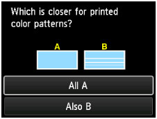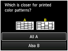 2. Select the pattern that is closer to the printed nozzle check pattern on the confirmation screen.