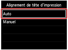Sélectionnez Alignement de tête d'impression et appuyez sur le bouton OK.