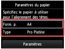 L'écran des paramètres du papier s'affiche.