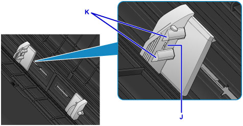 • The raised parts (K) on the paper guides retract depending on the size of the loaded paper. Do not push these parts down with your finger.