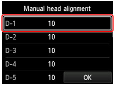 Note- When the automatic print head alignment has not been performed, a message will appear. In this case, select Yes, press the OK button, then perform the automatic print head alignment.