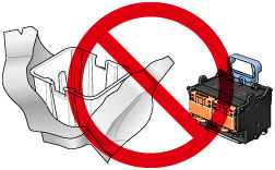 • If you need to put a print head somewhere temporarily before installation, return it to the head case in the same orientation. Placing it face down may damage the nozzles or the metal contacts, affecting printing quality.