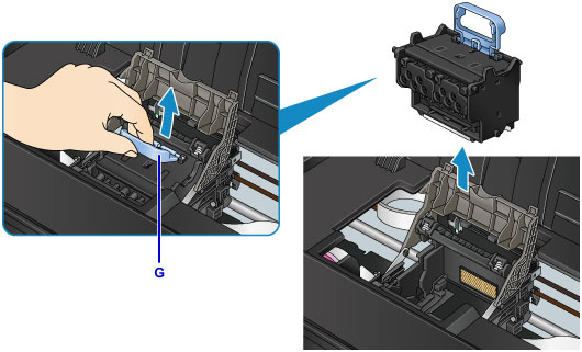 • There may be ink around the nozzles of the print head you remove. Handle the print head carefully during replacement. The ink may stain clothing.