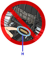 • Never touch metal contacts (H) of the print head holder. Also, do not allow any dirt to adhere to the metal contacts of the print head holder. This may damage the printer.