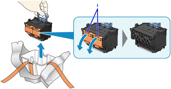 • Do not open the print head package until immediately before installation. After taking the print head out of the package, install it right away. If the print head is left as is after the package is opened, the nozzles may dry out, which may affect printing quality.