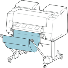 Rollenpapier mit maximal 1,575 m (62 Zoll) Länge kann im Korb gesammelt werden. Wenn auf längerem Rollenpapier gedruckt wird, verwenden Sie den Korb wie unter "Drucken auf großformatigem oder leicht zu beschädigendem Papier (Position 3)" beschrieben oder verwenden Sie ihn mit der Rolleneinheit als Aufnahmevorrichtung.