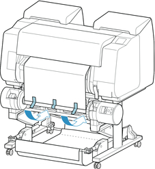 Beim Einziehen nach innen kann das Lockern des Papiers verhindert werden, indem das Rollenpapier mit dem Arm gepresst wird. Dies kann jedoch zu Druckspuren auf dem Papier führen. Tippen Sie in diesem Fall auf den Bereich Rolleneinheit im Anzeigebereich mit den Medieninformationen und stellen Sie Papierhalte-Einstellung auf Freigeben ein.