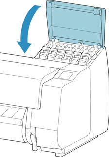 Öffnen Sie die Tintenpatronenabdeckung des Tintenbehälters, den Sie ersetzen möchten, und prüfen Sie die Anzeige für Tintenbehälter.
