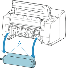 7. Afferrare il Supporto per rotolo per le relative flange (A), quindi rimuoverlo dallo slot supporto rotolo.