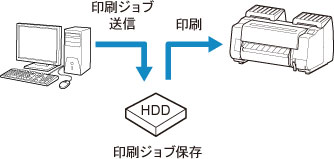 印刷ジョブを、プリンターのハードディスクの一時保存領域に保存しながら印刷を行います。