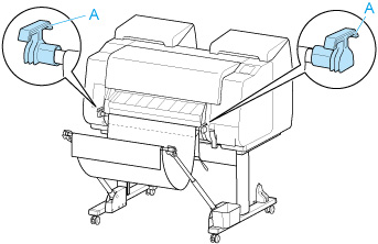 When attaching the basket rod (cord side) to the front of the printer, make sure both ends of the rod (A) are securely hooked onto the attachment parts.