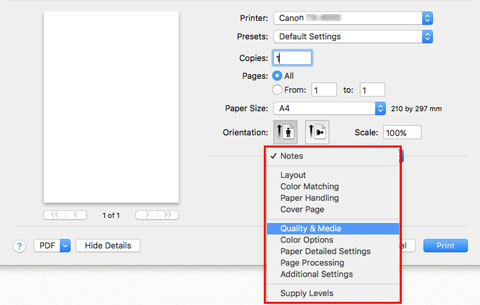 인쇄하기 전에 시스템 환경설정(System Preferences)의 프린트 및 스캔(Print & Scan)(다른 버전의 macOS X에서는 프린터 및 스캐너 또는 프린트 및 팩스(Print & Fax)로 식별)에서 프린터를 등록해야 합니다.