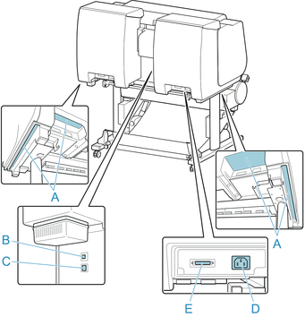 - 이 포트에 이더넷 케이블을 연결합니다. 이더넷 케이블이 올바르게 연결되어 컴퓨터와 프린터 간의 통신이 가능한 경우 램프가 켜집니다.
