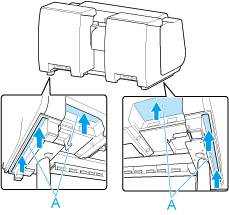 프린터에 부착되어 있는 테이프와 포장재를 제거합니다. 또한 상단 커버를 열고 프린터 내부에서 스토퍼와 스페이서를 제거합니다.