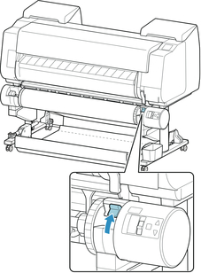 Stellen Sie den Schalter Rollenhaltersperre an der Rolleneinheit in die Entriegelungsposition.