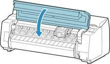 Während Sie auf die Taste (A) in der Mitte des Sperrhebel für den Druckkopf drücken, ziehen Sie den Hebel zum Öffnen bis zum Anschlag nach vorne.