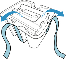 Die Innenseite der Schutzkappe ist mit Tinte beschichtet, um die Düsen zu schützen. Achten Sie darauf, diese Flächen beim Entfernen der Kappen nicht zu berühren.