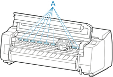 Sujetando el gancho (A), abra la cubierta de bloqueo del cabezal de impresión hasta que se detenga.