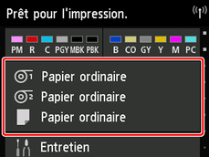 Pour en savoir plus sur les types de support, reportez-vous à «Liste d'informations sur les papiers». Dans les paramètres d'usine par défaut, le type de support sélectionné est Papier ordinaire.