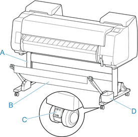 Supporto su cui viene appoggiata la stampante. È dotato di rotelle per agevolare lo spostamento della stampante.