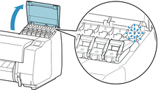 Aprire il coperchio del serbatoio d'inchiostro che si sta sostituendo e controllare l'indicatore luminoso dell'inchiostro.