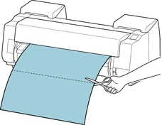 プリンタードライバーの[オートカット]で、[なし]または[カットラインを印刷]を選択して印刷した後で、カッターブレードをタッチスクリーンの操作で動作させて、ロール紙をカットしたい場合に選択します。 またはロール紙のセット後に用紙の先端をカットしたい場合に選択します。 |