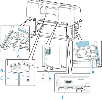 左右底面のこの部分を持って、6人でプリンターを運びます。