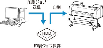 - 印刷と同時に一時的に印刷ジョブを保存し、印刷後に印刷ジョブを消去します。