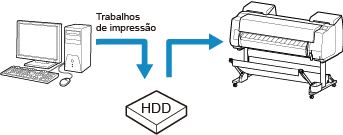 - Execute a impressão ao salvar o trabalho de impressão na área de armazenamento temporária do disco rígido da impressora.